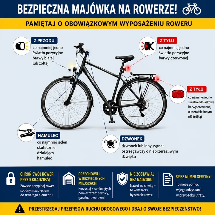 Na ścieżkach i drogach robi się tłoczno, a wraz z pierwszymi ciepłymi dniami rośnie też ryzyko kradzieży. Policja przypomina, że spokojna majówka zaczyna się od sprawnego roweru, widoczności na trasie i dobrego zabezpieczenia przed złodziejem.